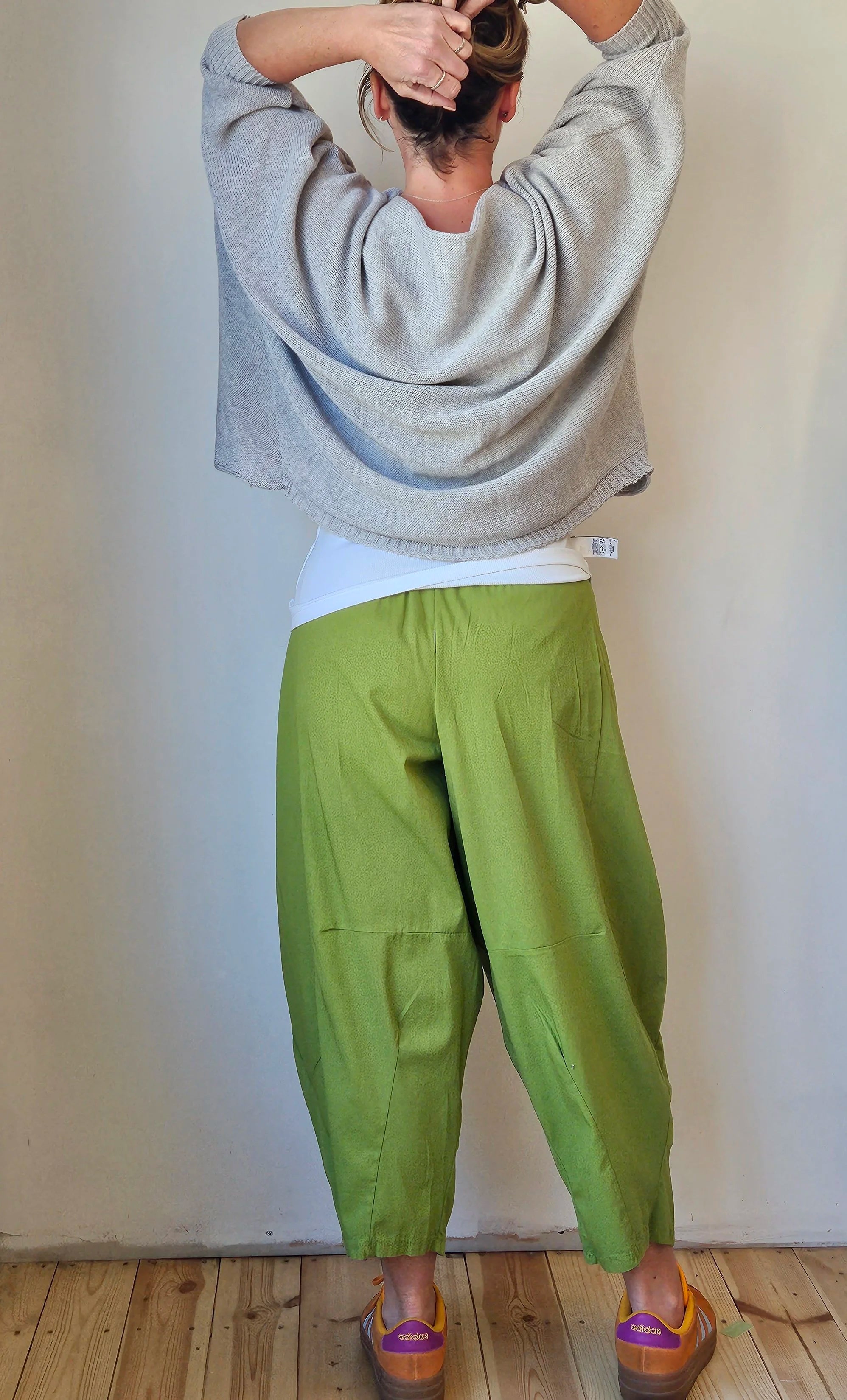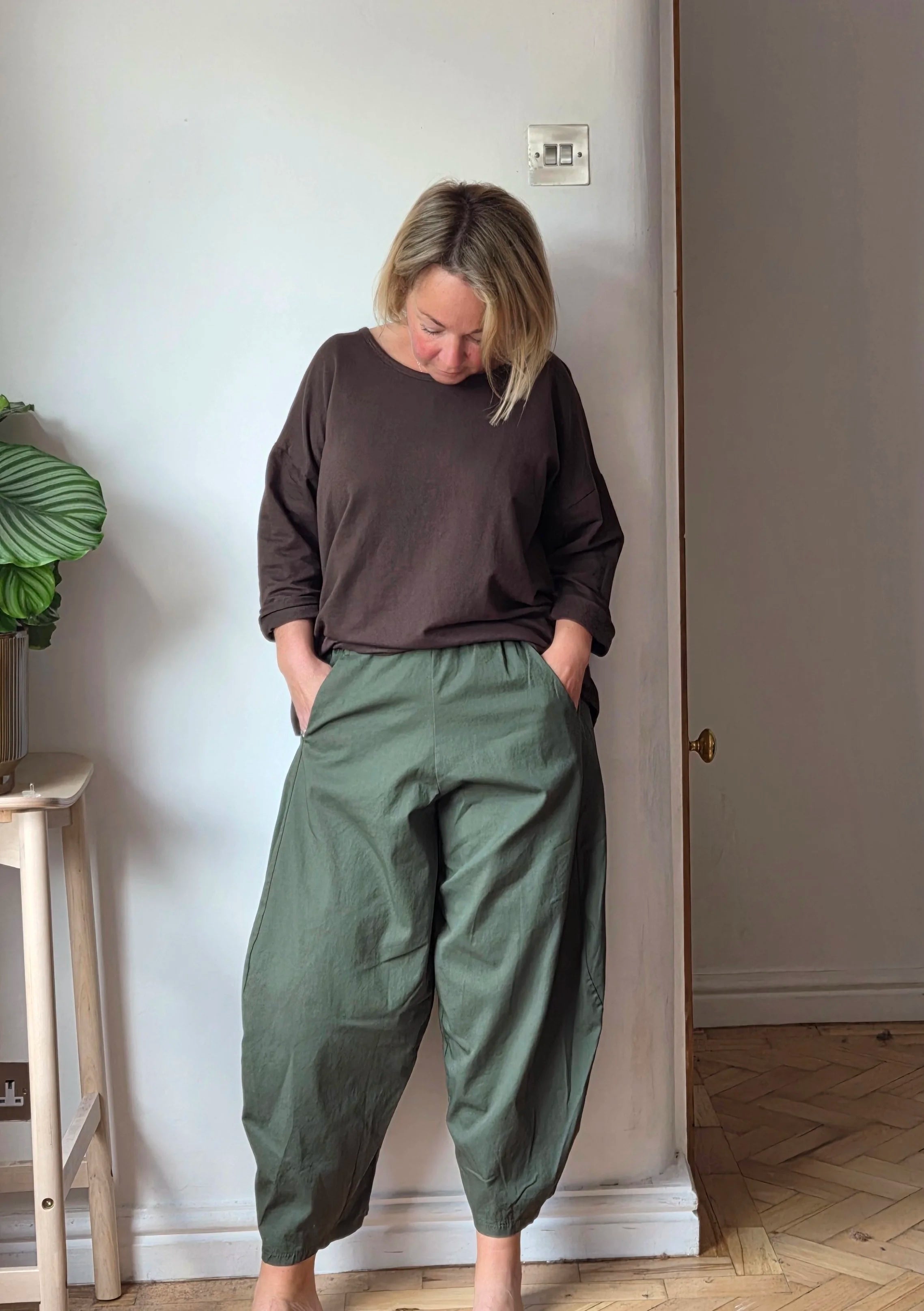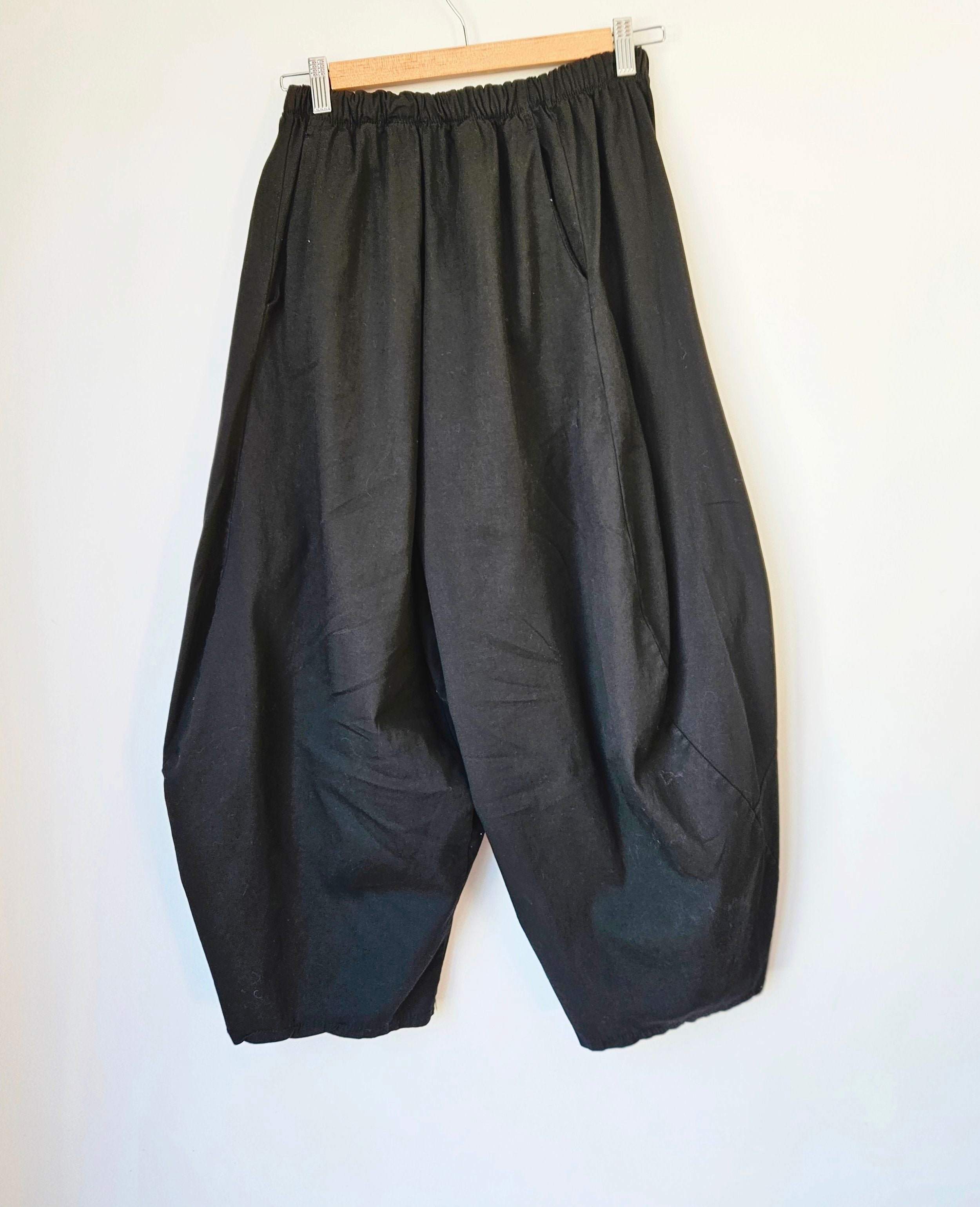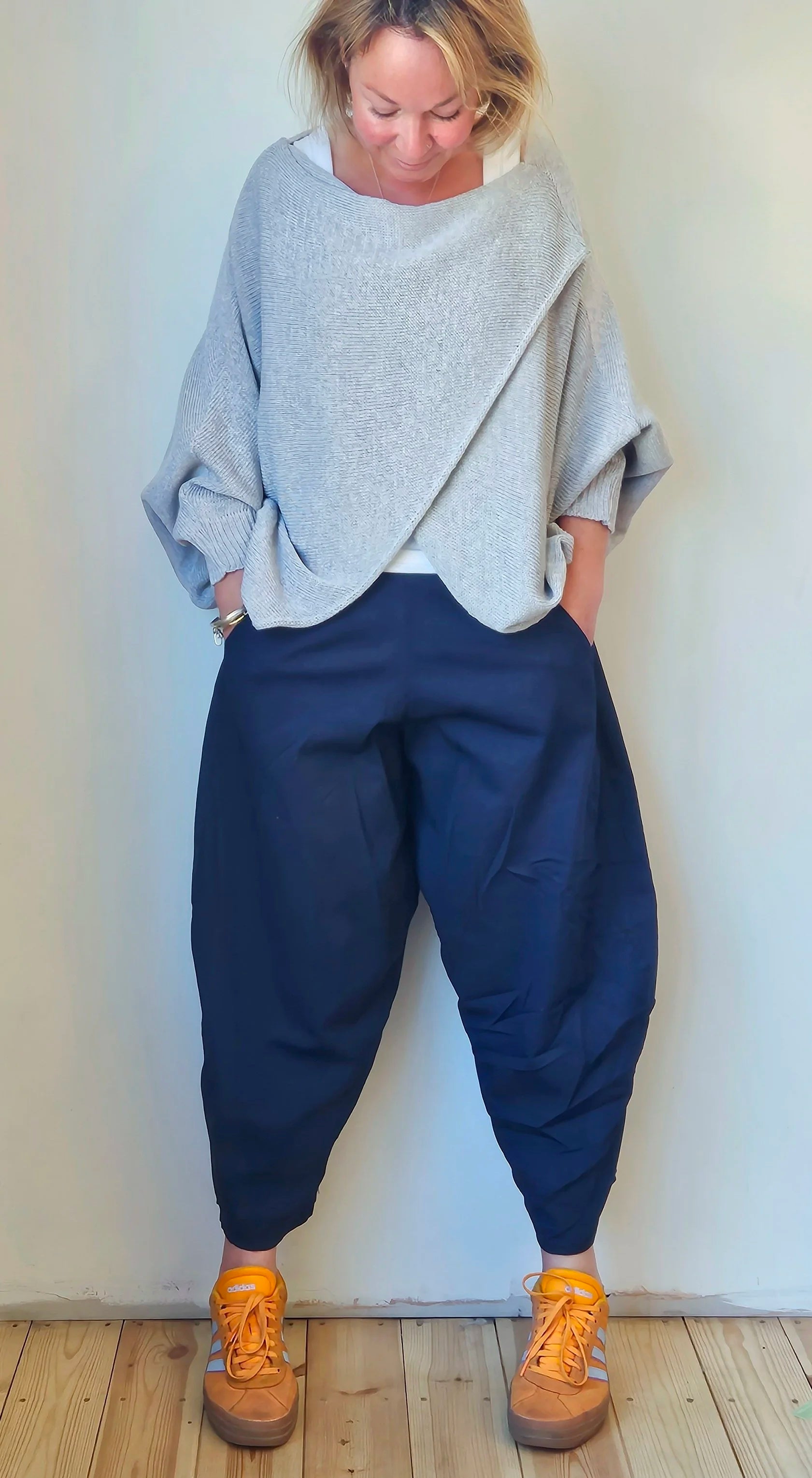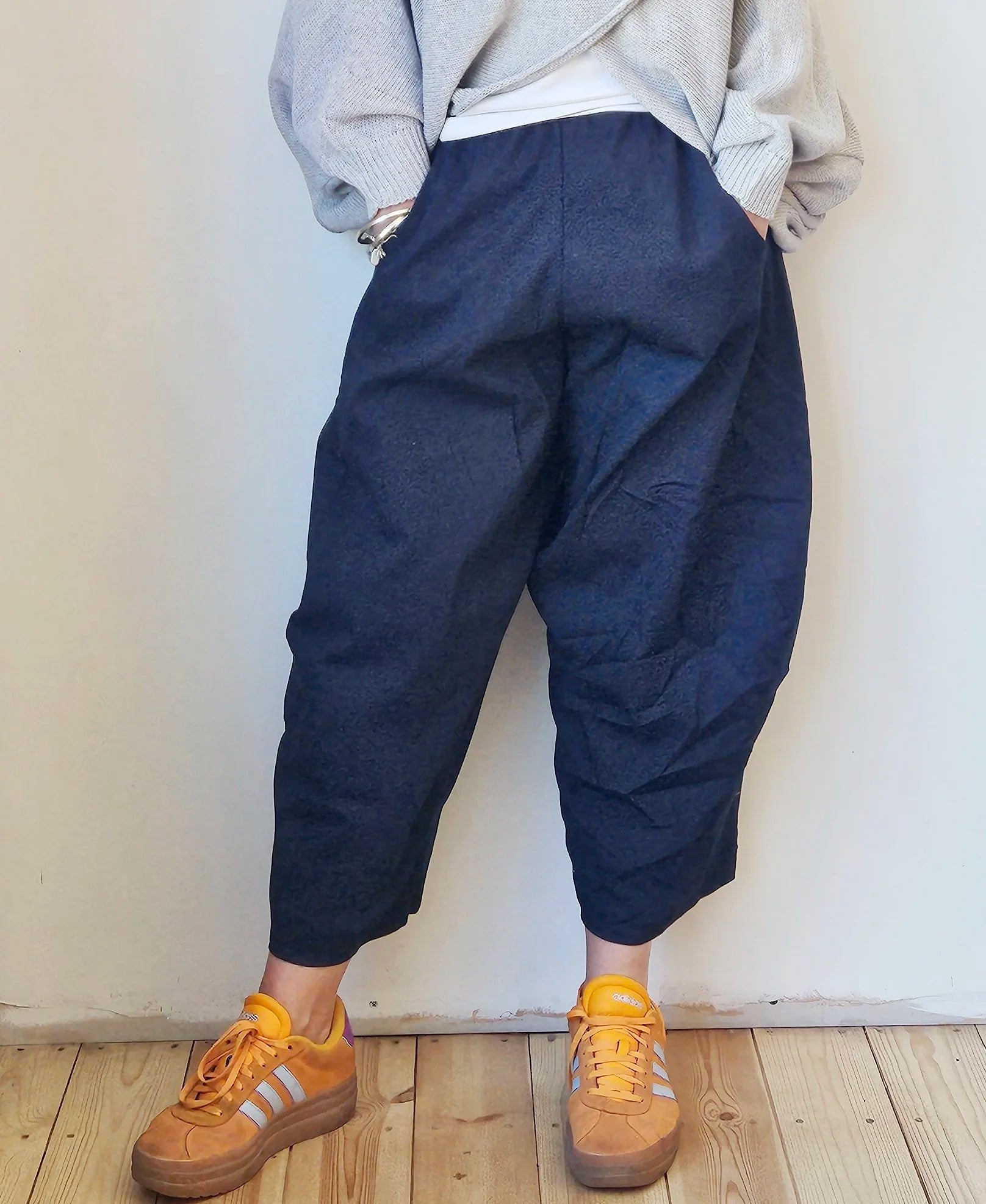 The ultimate of comfort without sacrificing style! These cotton cropped trousers with elasticated waist have a cocoon style that is slightly shaped towards the bottom of the ankle. They have a very comfortable elasticated waistband which makes them great while travelling, perfect for long days out.