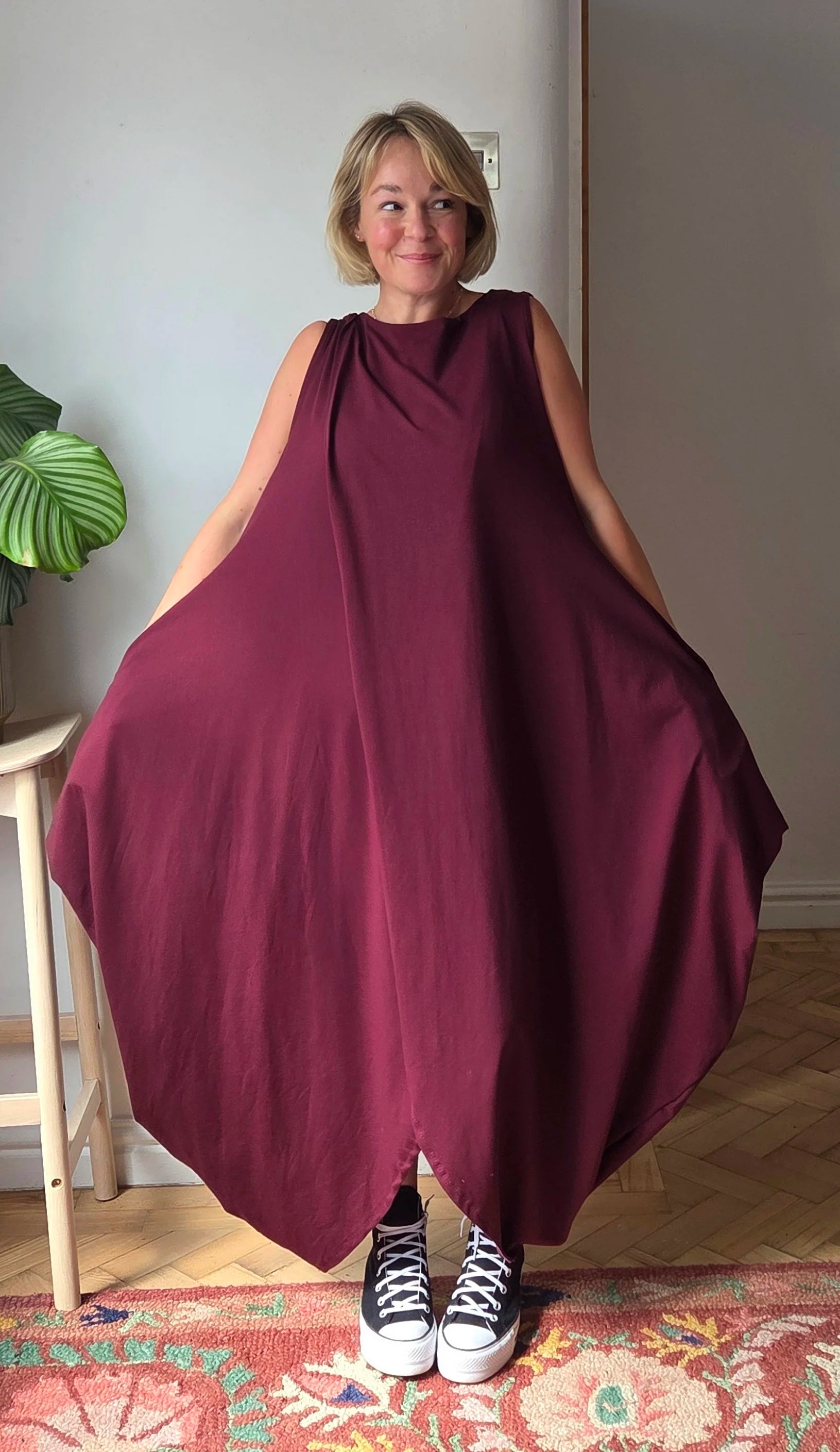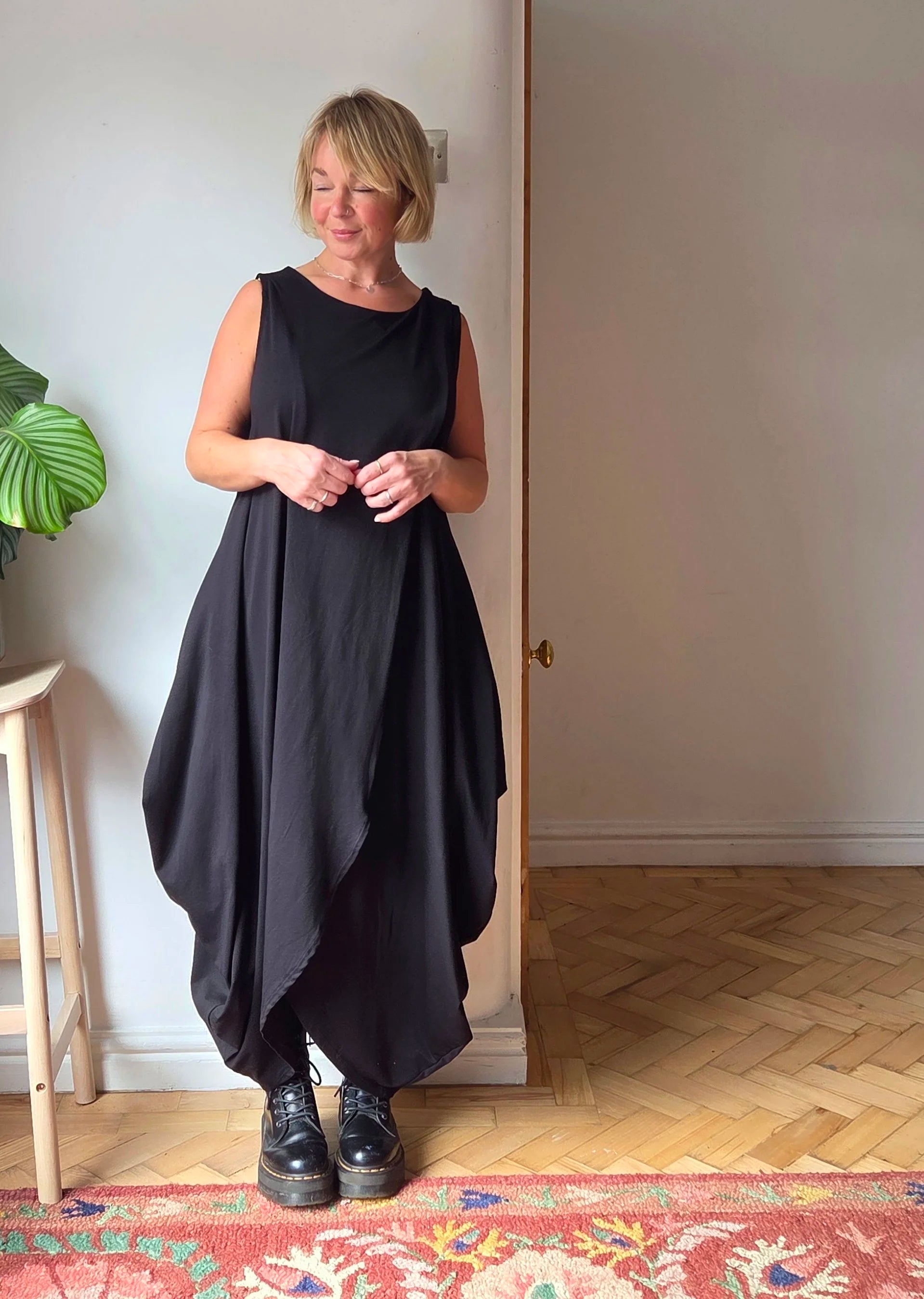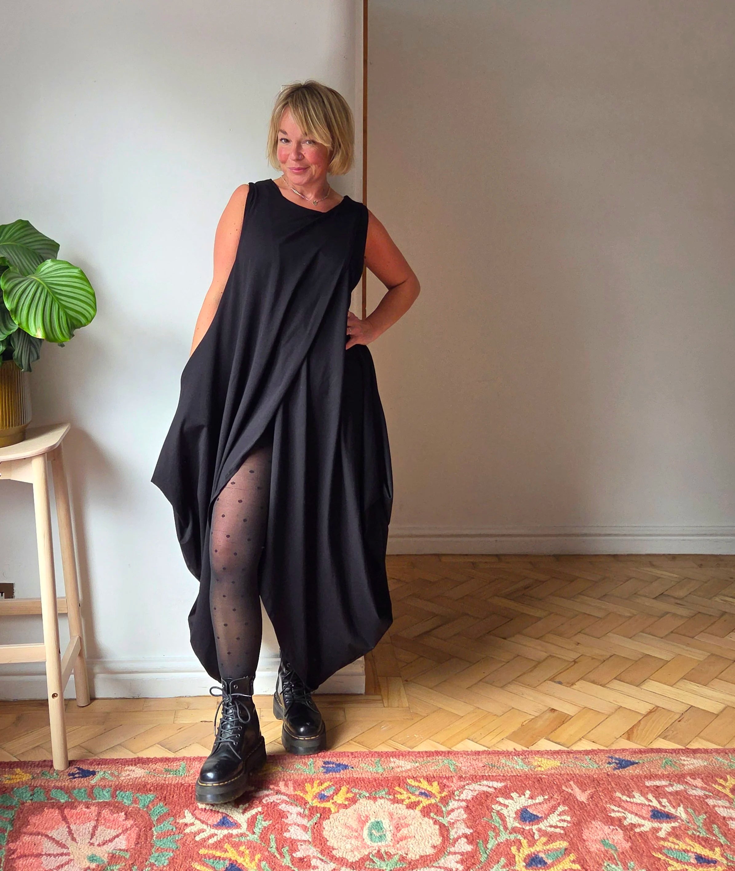 Quick delivery. It’s a really lovely dress. A heavier weight fabric so it hangs very well. One size but fits really well! I’ll definitely…