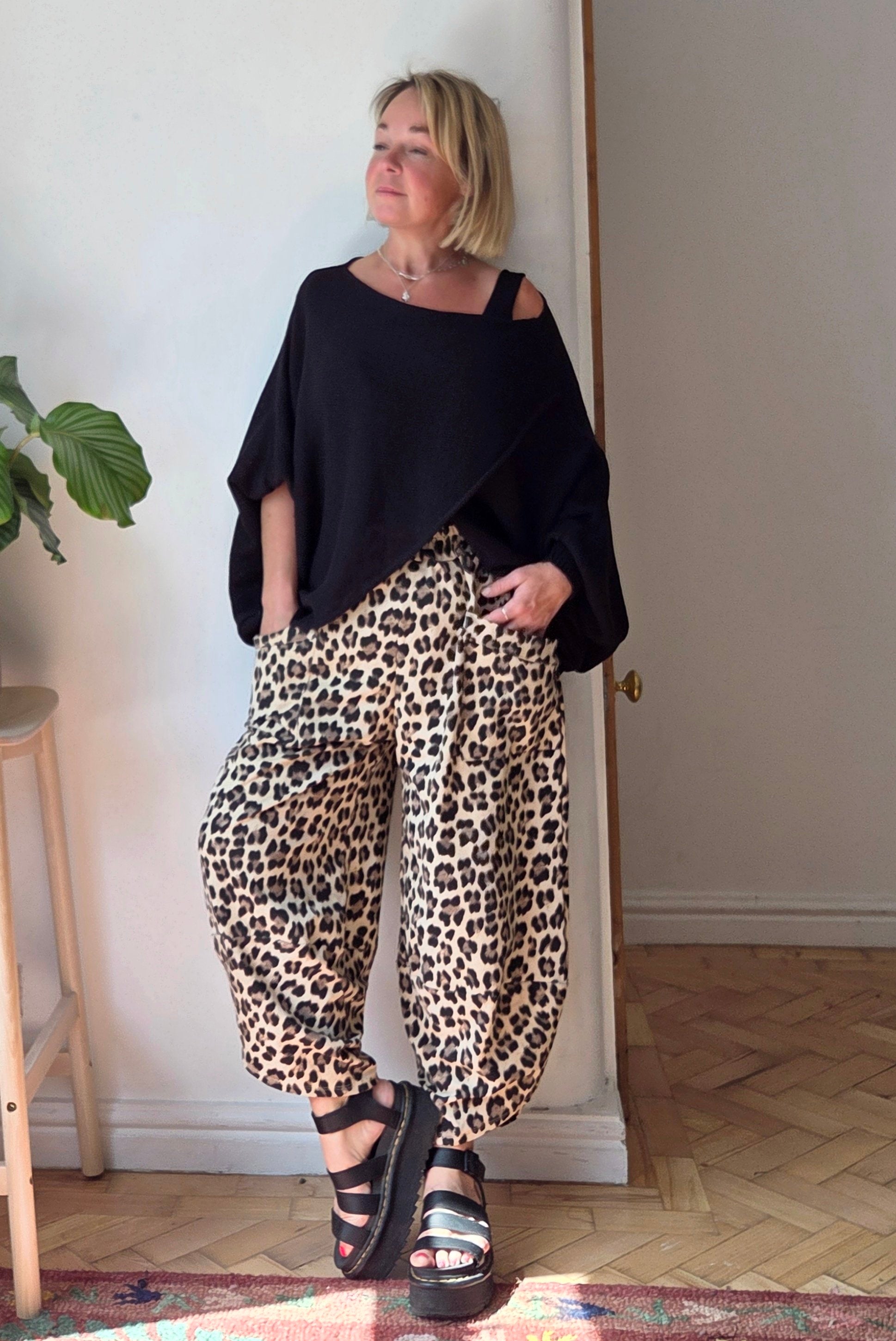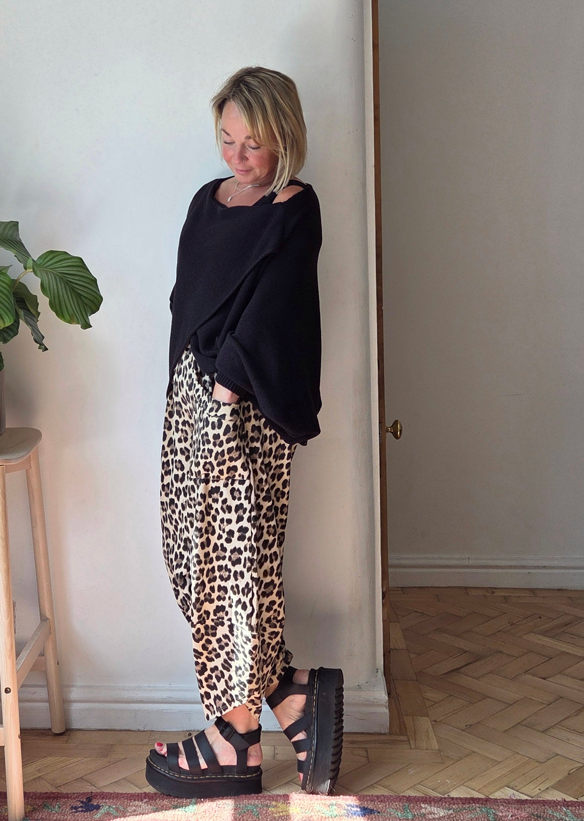 We love pairing these leopard print cropped trousers with a cap sleeve t shirt in the summer, or with a cross front lightweight jumper in the cooler weather.