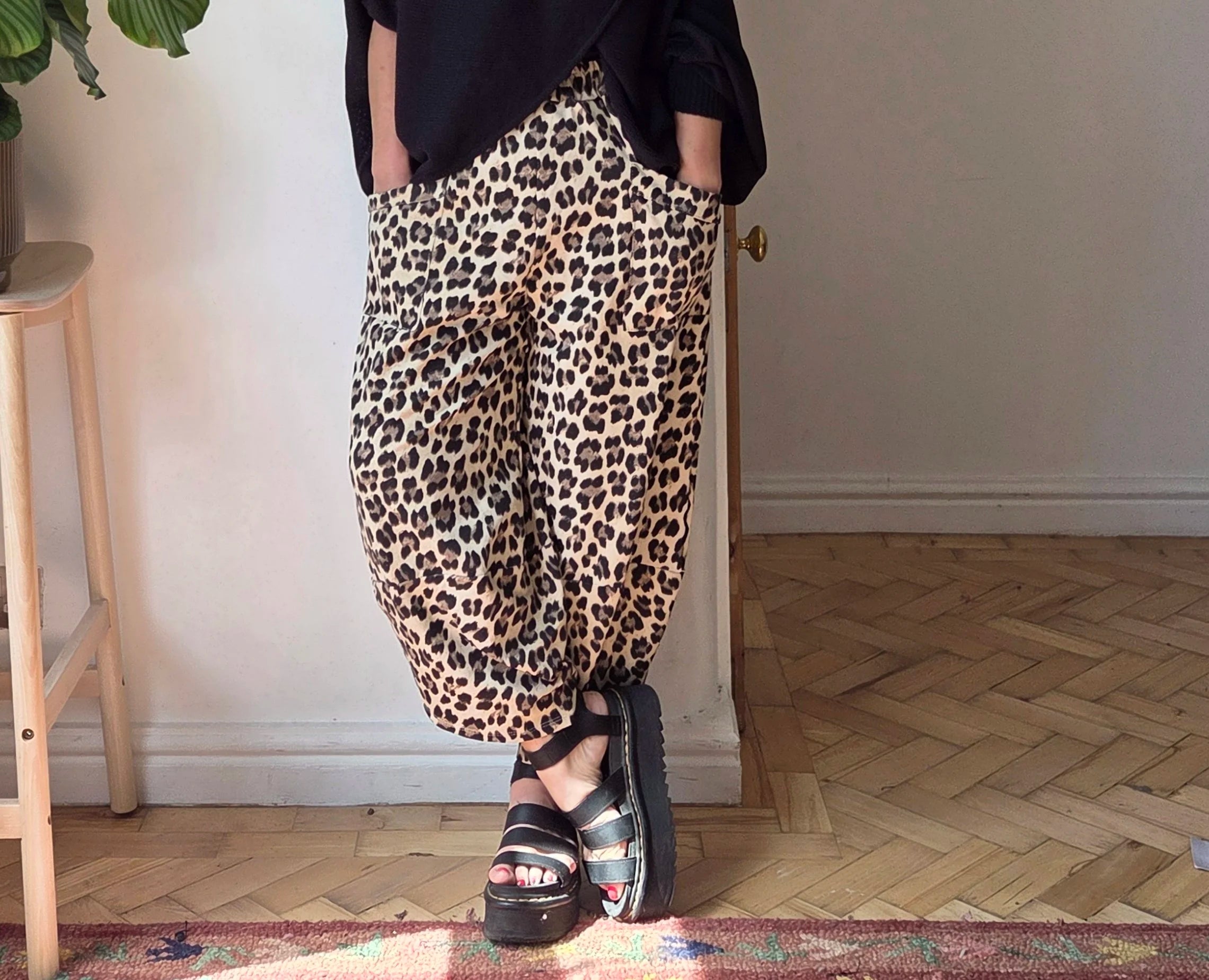 These leopard print cropped trousers are sure to become your go-to option in your wardrobe, whether pairing with sandals for a summer day out, boots for a day of adventure, or with sneakers for a school run.